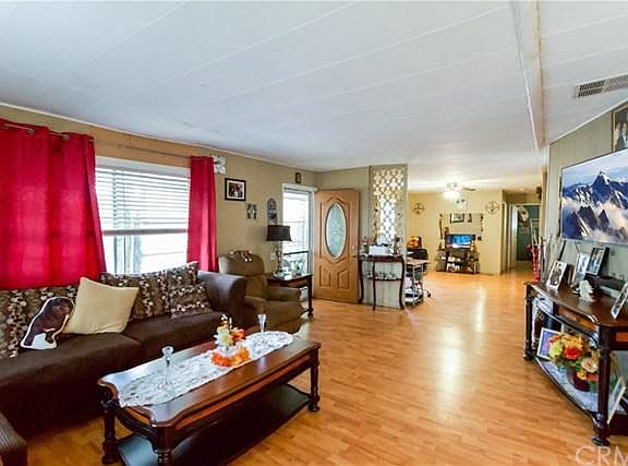 This spacious double wide 2 bed 2 bath mobile home, has enough space to make a 3rd bedroom, an open floor plan spacious kitchen with a separate dinning area and spacious bedrooms and Washer, dryer hookups. Home has laminate hardwood floors throughout. Spacious carport parking for up to 3 vehicles with and a rear back yard perfect for those summer barbecues. Community offers 24 hour security, sparkling pool, community center that can be used by owners for birthday parties or special events and plenty of guest parking. Close to shopping, transportation and freeways. Don't let this one pass you by make it yours today!