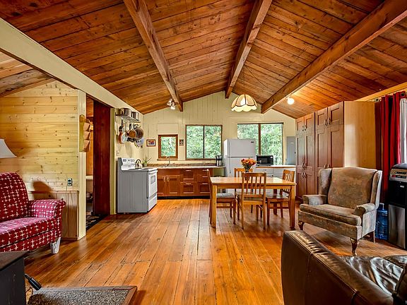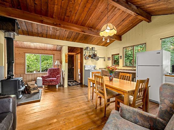 Nestled in a sought-after location on Seawright Road, this 1-acre property offers the perfect mix of privacy and potential—just a few doors from a beautiful beach access. The rustic cabin is simple yet well-designed, with a layout that makes the most of its space. Two generous bedrooms provide comfort, while the heart of the home is a single great room combining kitchen, dining, and living areas around a cozy woodstove. Doors open to a spacious back deck, ideal for al fresco meals and family time. The yard feels both open and secluded, with lush fig, plum, and apple trees plus garden boxes for growing your own produce. Two sheds provide storage and flexibility, while an additional space with a bed, toilet, and laundry makes a perfect guest suite or studio. With its prime location and versatile features, this property is a welcoming island retreat and a wonderful foundation for your future vision.