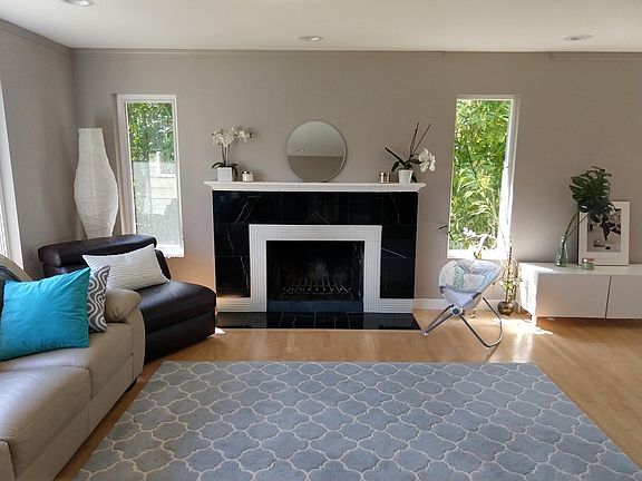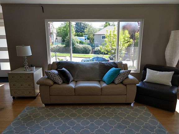 This beautiful, light-filled, 2-unit home is located in the desirable Seaview neighborhood of West Seattle, just 3 blocks from California Avenue. Enjoy the quality of life this area boasts, which includes Alki Beach and Lincoln Park, the Junction and Admiral shopping districts, the Sunday Farmers Market, as well as many excellent restaurants, coffee shops, and grocery stores. It is also within a desirable school district, with excellent schools nearby, and conveniently located 3 blocks walking distance to the Rapid Ride bus stop, connecting to downtown Seattle within minutes. This Rental (main upper unit of the home) features: a renewed modern exterior, living room with fireplace and hardwood floors; family room with wall-to-wall carpet and adjoining ~200 sqft patio with breathtaking sunset views of the sound; kitchen with gas range/oven, granite counters/bar area, and adjoining walk-in pantry and dining space; main bath with marble tiling, quartz vanity, and refinished cast iron bathtub; spacious wall-to-wall carpeted master bedroom with views of the sound and built-in wall-to-wall wardrobe system; luxurious newly remodeled master bath with walk-in shower, soaking tub, quartz double vanity, skylight, and private toilet; two additional large bedrooms (approx 12'X12' and 12'X15') with hardwood floors and plenty of closet space; brand new windows, window-coverings, and doors through-out; spacious attached 2-car garage and plenty of street parking for guests; front lawn with space for gardening (if desired) including delicious grapes right off the vine in the summertime. Non-smoking, unfurnished rental. Minimum 1 year lease duration. Move-in fees: first month's rent and refundable security deposit (equal to one month's rent) plus non-refundable cleaning fee of $200. There is a monthly pet fee, if applicable. We accept (1) cat or (1) small dog (under 25 lbs) with an additional monthly pet fee of $25/month No utilities included. Utility split with the downstairs unit is managed by the landlord.