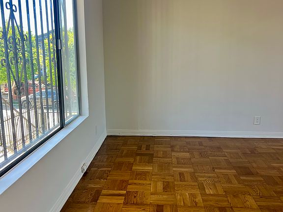 Natural lightClassic parquet flooringGenerously sized kitchenFloor-to-ceiling built-insPlenty of cabinetryFull-sized tubOverhead fan