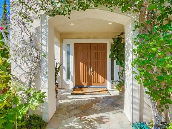 Stunning home located on a quiet cul-de-sac in the highly coveted Sage Canyon community. As you enter through the double doors, you will see the open layout highlighted by all the designer finishes. Large 24x24 marble flooring throughout the 1st floor common areas, recessed lighting in all rooms, custom-made built-in wall system in the family room, shutters in the living room, plush carpets in all bedrooms/office, & hardwood flooring in the bonus room upstairs. Gourmet kitchen w/Viking stainless steel appliances, granite counters, custom cabinetry w/LED lights inside cabinets, electric shades, walk-in pantry, wine refrigerator & a huge island counter. Offering 3 en-suite Bedrooms, 2 Bedrooms w/Jack-n-Jill Bathroom, Home Office w/en-suite bathroom, Family Room w/fireplace & electric roller shades, & Bonus room w/balcony, this home is equipped to comfortably accommodate families of all sizes. Family & Bonus rooms each have built-in surround sound speakers. One en-suite bedroom & home office is located downstairs. The Master Suite features a fireplace, shutters, private balcony, 2 huge walk-in closets w/built-in closet systems, spa-like Master Bath w/jetted soaking tub & walk-in glass shower enclosure. Backyard is gorgeous w/tropical landscape, built-in BBQ, trees on both sides of property for privacy, & Pool & Spa w/solar panels. It is perfectly located on the west side of the house for spectacular sunsets. Perfect atmosphere for year-round entertaining. 3 Car Garage w/ Epoxy flooring & 4 additional spaces in driveway. Dual A/C with Nest Thermostat Control. Dual pane Windows throughout. Close proximity to award winning schools, beaches, & the many shopping/dining options throughout Carmel Valley.