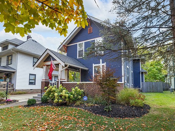 Historic Irvington at its finest! Formerly the home of Marty Powell (now the namesake of the IRV Halloween costume parade!) this home has been lovingly updated while restoring as much of the original character as possible. Walk up the front steps to a spacious porch - perfect for greeting your neighbors. Inside you'll enter into a foyer and notice the 10ft ceilings throughout the main. Parquet hardwood floors throughout the living room and dining room, massive original windows and a newly installed gas fireplace. Large double doors off of the dining room connect indoor/outdoor living and entertaining as well as a fully updated kitchen with stainless appliances, quartz countertops, tile backsplash and new cabinets. Further back, you'll find a flex space (great for dogs, coffee bar, additional seating, a half bath and laundry room. Upstairs, you'll find hardwoods throughout and 4 bedrooms - one which was originally a sleepin' porch! Hall bath has a large closet and primary bedroom features a spacious en-sute with standing tiled shower, clawfoot tub and walk-in closet. Fully fenced back yard (chickens do not convey) and IHPC-approved garage plans can be provided with sale. Approved build is for a 22'x26' 2-story garage, but standard 2-car would also be approved. Notable Updates: HVAC (2019), Interior Plumbing (2019), Roof & Decking (2019), Electrical & Updated Panel (2019), Deck/Fence (2019), Full Kitchen & Primary Bath (2019), Gas Fireplace (2023), Recessed Lighting in Main Areas (2023).