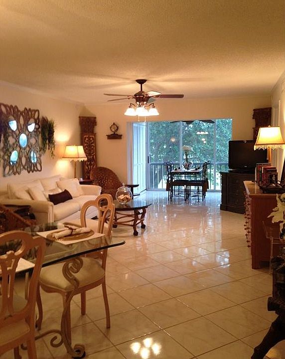 This is a 55+ community. This beautiful 2 bedroom 2 bath unit has been updated. Lanai is under air with triple sliders and wet bar. End unit with views of golf course, canal & pool. Unit is directly convenient to elevator. Covered parking is directly in front of unit, also 2nd covered parking in center area. This is a one of a kind, come and see.