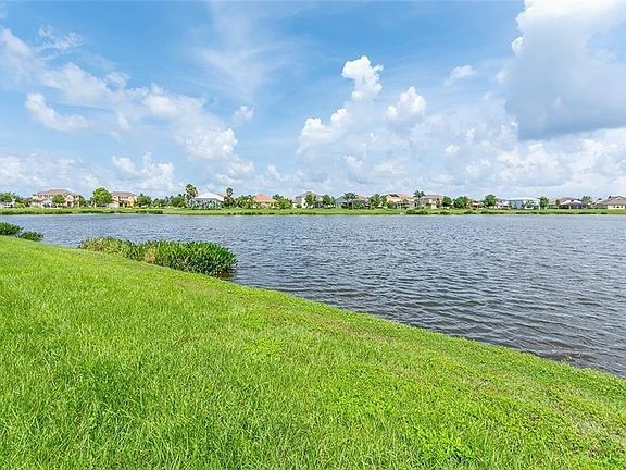BEAUTIFUL LAKEFRONT home with AMAZING SUNSETS from your own back patio! This beautiful 3 bedroom, 2 bathroom home is move-in ready. The kitchen features CORIAN COUNTERTOPS, wood cabinets, tile backsplash, DOUBLE OVEN, a BRAND NEW REFRIGERATOR, almost new microwave, and drop lighting above the BREAKFAST BAR that opens up to the spacious great room. Both the great room & kitchen have VIEWS OF THE LAKE. The great room has 4 recessed lights, which could easily be turned into surround sound speakers. The large master suite features two windows, with LAKEVIEW, perfect for a rocking chair and a good book. The master bathroom includes DUAL SINKS, a WALK-IN SHOWER, and a separate GARDEN TUB. The two secondary bedrooms are on the opposite side of the home to create privacy & quiet for the master suite. These two bedrooms share a spacious bathroom close by. You'll love the floor-to-ceiling chalkboard in the kitchen, which provides a perfect location for posting and organizing the important things in life. The community is full of activities...RESORT-STYLE COMMUNITY POOL, TODDLER POOL, CLUBHOUSE, FISHING PIER, PLAYGROUND, WALKING TRAILS, FITNESS CENTER, BASKETBALL COURT, and a VOLLEYBALL COURT...all with a VERY LOW HOA FEE of just $109 per year! Just a few minutes to I-75 and restaurants and shopping. 25 minutes to Tampa. Can you imagine yourself relaxing on your new back porch, with a cold drink in your hand, gazing at the gorgeous sunset each evening....what could be better?