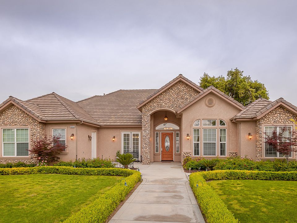 Price Reduction! Exquisite estate near Sunnyside Country Club & golf course. This luxurious home offers 5bed & 3baths. Kitchen features granite countertops, elite stainless steel appliances, cherry wood cabinetry, and 2 sinks. Open to the Great Room, with high coiffured ceilings; decorative wood panels on the walls; dark wood entertainment center; 2 gas fireplaces and isolated guest suite. Decorative light fixtures are works of art from James Lighting. Formal Dining Room with French Doors to the lovely landscaping in the front yard. The lot is approx. 1.6 acres, with cross fencing for a smaller back yard behind the house & RV port. Automatic front gate. Zoning allows horses (buyer to verify). For a private showing call 559-840-5241