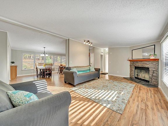Welcome Home! Sitting on over 2.5 acres, this well-maintained 4 bedroom/2bathroom doublewide is sure to delight. Enter in the front door to the open floor plan from the living room to the dining area and kitchen. You will also find a spacious primary suite, 3 great-sized bedrooms and another full bath. Some great features include: LVP flooring throughout, new roof, updated lighting, new paint, new gravel put down & a wood burning fireplace. Enjoy your time in the outdoors exploring through the woods or entertaining guests on the back patio. Don't miss out on your opportunity to own this beautiful country home!