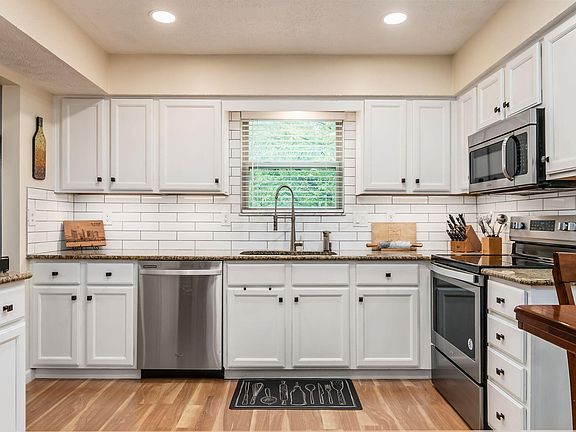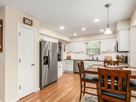 It's love at 1st sight. This beautiful home is completely updated and ready for you to move in! The kitchen features white cabinets, tile backsplash (2020), recessed lighting (2020), granite counters, brand new refrigerator and a pantry. Luxury vinyl floors make cleaning up a breeze. All open to the great room. The primary suite has vaulted ceilings, walk-in closet and updated bath. 3 addl bdrms and an updated hall bath complete the 2nd floor. New Carpet 2017. Downstairs features built-in storage cabinets for games or crafts and a play/workout area. You'll love the outdoor space too with a professionally vinyl fenced back yard (2017) and a patio and deck. Plenty of room for all your outside activities.Bonus storage shed for all your tools and equipment. Great location.
