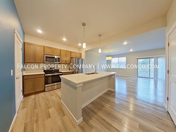 Welcome home to this bright and inviting space featuring an open floor plan that makes everyday living feel effortless. The modern kitchen shines with stainless steel appliances, stone countertops, a spacious breakfast bar, and plenty of room to prep, cook, and entertain. Relax in the cozy living area with a gas fireplace, perfect for chilly Colorado evenings. The primary en suite offers privacy and comfort with its walk-in closet and thoughtfully designed layout. You'll love the beautiful LVP flooring on the main level, offering durability and style, along with plenty of storage throughout the home to keep life organized. This home combines modern finishes, open spaces, and warm comfortready for you to settle in and enjoy! Easy access to Powers Blvd. for restaurants, shopping, entertainment and more! Don't miss the opportunity make this your new home!