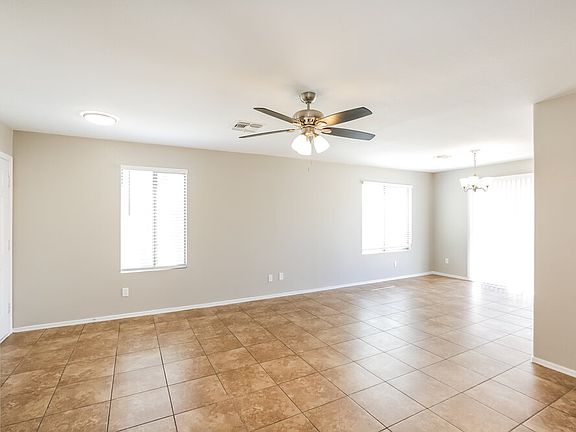 With its palm trees, tile roof, and attached garage, this Glendale, AZ rental home makes a great first impression. Inside, you'll find three bedrooms, two bathrooms, plus excellent amenities such as smart home functionality, central HVAC, and a convenient laundry room. The living room has a lighted ceiling fan and neutral-colored walls, perfect for matching any style decor you prefer. Steps away in the dining area, sliding glass doors bring in an abundance of natural light. The eat-in kitchen comes with a pantry, quartz countertops, and ample space for storage in the all-white cabinets. In the private main bedroom suite, you'll have a rear-facing window as well as a sizable closet. Book your tour soon!