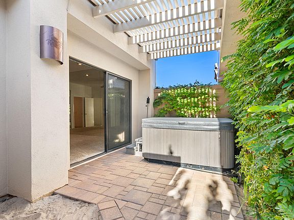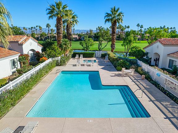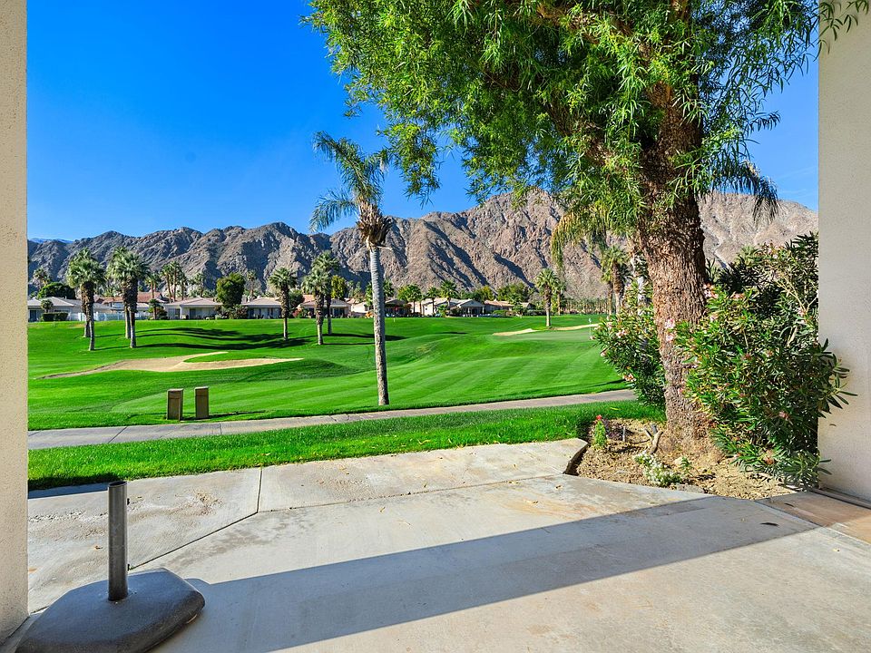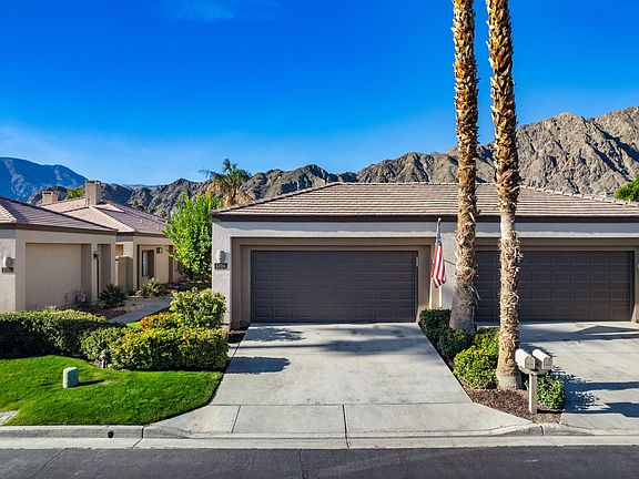 Enjoy PGA's vast accommodations and elite golf tournaments Introducing a three-bedroom, three-bathroom condominium spanning 1918 square feet, conveniently situated on a SINGLE level. Behold the captivating westward vistas of the Santa Rosa mountains, overlooking the scenic par 3 third hole of the renowned Arnold Palmer Private course at PGA West. Step into the inviting living room, adorned with a cozy fireplace and a convenient wet bar. The space seamlessly extends to a serene rear patio boasting a misting system and panoramic views that are nothing short of spectacular. The primary suite is a retreat in itself, offering three closets and a private patio complete with a romantic hot tub. The guest bedroom offers its own en-suite bath, while the third bedroom provides flexibility as a den or family room. A spacious 2-car garage ensures convenience, and just across the street awaits the community pool and spa, promising relaxation and leisure. Embark on a journey to explore the unique charm of this property and delve into the enticing advantages offered by the various levels of PGA West club membership. Don't miss the opportunity to make this exceptional condominium your new home.