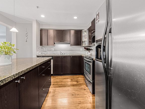 Welcome to BRYDON WALK! Centrally located in Langley City, this 2 bedroom, 2 bath condo offers an efficient and spacious floor plan. The master bedroom sits acrcoss the living space from the second bedroom, offering privacy and a large walk thru closet that leads into its own bathroom. Recently updated with new floors, backsplash, and appliances, it combines modern comfort with convenience. Enjoy the vibrant community and easy access to amenities. Perfect for those seeking a stylish urban retreat in a prime location. This quality built home can have you in the park or on the highway fast. You will love living here!