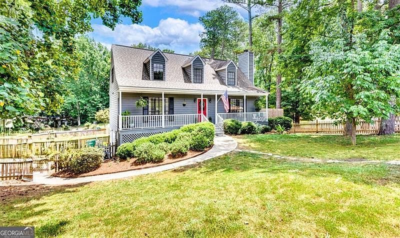 Welcome to this charming Cape Cod home, nestled by a quiet cul-de-sac in the highly sought-after Simpson School District. Enjoy cooking in the bright kitchen overlooking the expansive backyard The kitchen also features granite countertops and a moveable island with storage. The main level boasts a dining/great room with a stone fireplace and a large owner's suite featuring his and hers closets and room for an office or work out space. Upstairs, find two spacious vaulted bedrooms and a full bath. The finished lower level has brand new carpet and offers easy access from the 2-car garage and backyard. The back yard is large and fenced-in and also features a fire pit. The rocking chair front porch, and deck provide ideal spaces for outdoor enjoyment. This home is conveniently located near shopping, schools, the Chattahoochee River, and multiple parks, Don't miss out on this adorable Cape Cod retreat! Call your agent today to schedule your showing. Seller now offering up to $3000 in seller paid closing costs with strong binding Offer. Property is sold AS IS.