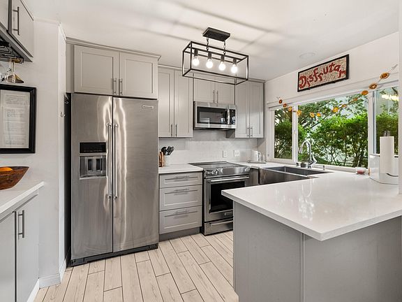 The interior showcases a thoughtfully remodeled kitchen, complete with modern finishes and fixtures. The bathrooms have been tastefully upgraded, featuring contemporary design elements that enhance the home's stylish appeal while maximizing functionality.