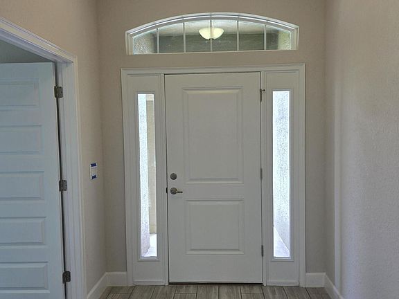 New construction. 1820 sq. ft. 4 bedrooms, 2 full baths, 2 car garage, & back covered lanai. Features split open plan with formal dining, big kitchen with eat-in area, and bar open to big family room with high ceilings. Master bedroom has vaulted ceiling, master bath has dual vanity sinks, walk-in closet, garden tub, & separate walk-in tile shower. A corner lot.