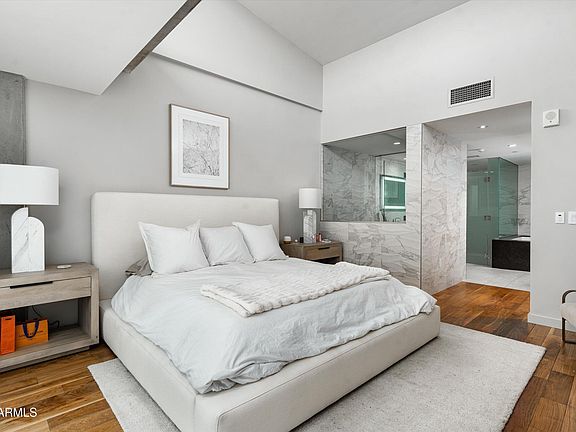 Discover refined living in this rare 2-bedroom, 2.5-bathroom penthouse at the exclusive guard-gated Mountain Shadows community. Flooded with natural light from floor-to-ceiling windows, the residence features rich hardwood floors and designer finishes throughout. The chef's kitchen shines with a waterfall island, Wolf and SubZero appliances, a wine fridge, and ample storage. The primary suite offers a serene escape with a spacious layout and walk-in closet. Step onto your private patio to enjoy stunning views of Camelback Mountain and unforgettable sunsets. Living at Mountain Shadows means more than just a beautiful home—it's a gateway to a resort-style lifestyle. Start your day with a round of golf on the picturesque, immaculately maintained course, or unwind at the sparkling pool surrounded by palm trees and mountain views. Savor fine dining at the on-site restaurant, work out in the state-of-the-art fitness center, or indulge in treatments at the luxurious spa. With concierge services, curated events, and easy access to Scottsdale's premier shopping, hiking, and art scene, this penthouse offers the perfect blend of comfort, convenience, and elegance.