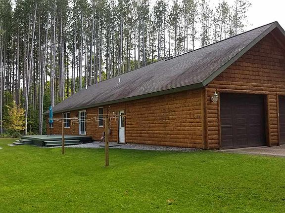 5455 Maple Grove Road. Great Location between Charlevoix, Boyne City and Petoskey in Hayes Township. TOWN & COUNTRY cedar sided home sitting among tall trees near Lake Charlevoix. Nice back yard, with full yard irrigation. Full 13 block basement. Excellent condition with many upgrades in the past 3 years. NEWER....carpeting, paint, light fixtures, deck boards, kitchen appliances, shed, water softener, irrigation system, washer, dryer, PLUS..Log siding has been stripped and stained this spring, Meticulous condition, move right in....