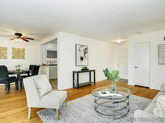 Introducing your dream home in the heart of Allied Gardens! Nestled alongside Navajo Canyon, this airy, light-filled residence seamlessly blends modern comfort with mid-century charm. Step into a timeless, stylish interior adorned with period tile and immaculate hardwood floors. The freshly painted interior of this one-story home presents a clean canvas for your personal touches. Two expansive sliding doors open from the living room onto the patio, offering breathtaking views of the serene canyon. A remodel created additional square footage, including a full bath and a generously-sized family room. Ample parking and a two-car garage for all your toys.
