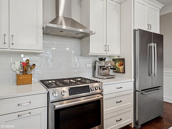 Looking for that rare special home with private outdoor space for lounging, gardening, and entertaining? This is it. Magazine quality finishes and furnishings in this beautiful top floor condo in pristine condition. From the exquisite crown molding to the on-trend colors and finishes, nothing has been overlooked. Extra-wide living/dining area provides maximum flexible space. Spacious balcony with room for dining and grilling. Elegant Quartzite countertops with glass tile backsplash. Large 7'x3' island w/wine cooler and 11" overhang. SS Bosch appliances. Interior stairs lead to the custom installed upstairs office with bar and beverage fridge. For your fresh air breaks, step outside to the covered rooftop lounge. Front and back rooftop spaces offer the choice of a seductive lounge in front, or lush garden with dining in back. Professionally designed and installed planters and garden are on a low-maintenance, automated watering system. The spaces feature 10' arborvitae framing a moss-covered fountain. Well-designed primary suite with frosted French doors, rain shower, double vanity, heated floors. Side-by-side laundry with finished shelving. Truly a one-of-kind property, in a great Ravenswood/Andersonville location.