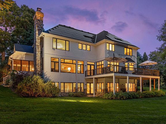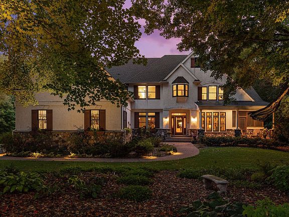 A private drive through towering maples leads to this custom two-story sited on 3.8 acres in Orono Schools. Light-filled spaces and walls of windows showcasing private woodland views from nearly every room. High level of finishes through-out, including hardwood floors, custom millwork and beamed ceilings. Open main floor features great room with stone fireplace, center-island kitchen and informal dining opening to sprawling deck overlooking the level lawn and woods. Main-floor study opens to screen porch surrounded by nature. Upper level includes primary suite with luxury bath and walk-in closet, four additional bedrooms with adjacent baths. Second floor laundry room with built in laundry folding station. Walk-out lower-level features family room with stone fireplace, full bar and multiple gathering spaces, and exercise room. Sprawling outdoor spaces with gardens, basketball court and firepite. Quiet cul-de-sac location minutes from Orono School Campus and Baker Park.