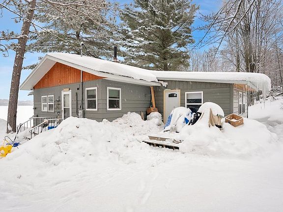 Close to perfect! Are you looking for a little cabin that is sitting on a perfect lake? Here is a 1+ bedroom cabin that is just what you are looking for. The beach is sandy and perfect with 207' of frontage. The cabin is close to the lake and there is a gradual slope to the waters edge. The lot is private and has a few outbuildings on it. There is a decent 2 car garage that has a slab and electrical service. enjoy the wood fired, 10'10x9'4 sauna with a small changing room. It is perfect for those cool days to get hot and then go jump in the lake or for those that are a little more hardy, you can jump in a snow bank! There is a wood shed that is perfect for your tractor and wood storage. The lake is clean and clear with a sandy bottom that is perfect for swimming, fishing or a nice ride on the pontoon. There is a quonset hut that holds your boat and has tracks leading to the water and a winch to pull your boat out of the lake when you are done using it. Seller is willing to sell the fishing boat too if a buyer wants to buy it in a transaction outside of closing. The cabin is a great place to relax and get away from the city life. There is a wood burning stove, and a gas fireplace. A large bedroom is on the back of the home that could easily be divided into 2 bedrooms if you need more space. The kitchen has hickory cabinets, the seller is keeping the new Samsung fridge, one will be left in the sauna. There is an apartment sized gas stove (2019), double stainless steel sink, laminate countertops, a small pantry, laminated flooring and a built in microwave (2019). The living room has big windows to enjoy the perfect view of the lake. There is an enclosed 3 season porch for those days when you want to be outside, but need to be inside. A centrally located utility room holds the electric water heater, laundry, and a wood stove. There is even enough room for some wood storage in the utility room. Stay connected to the world with fast High speed internet through a Norvado, fiber optic connection Telephone, TV and internet $(170 a month)! There is a 1 1/2 year old drilled well, a newer conventional septic system, (2019) and hot water plumbed to the outside of the house for year round hot water on the exterior of the home. Outside you will find a newer asphalt and steel roof on the house, a gravel driveway and hopefully you will find yourself too! Perfection does not have to be perfect.