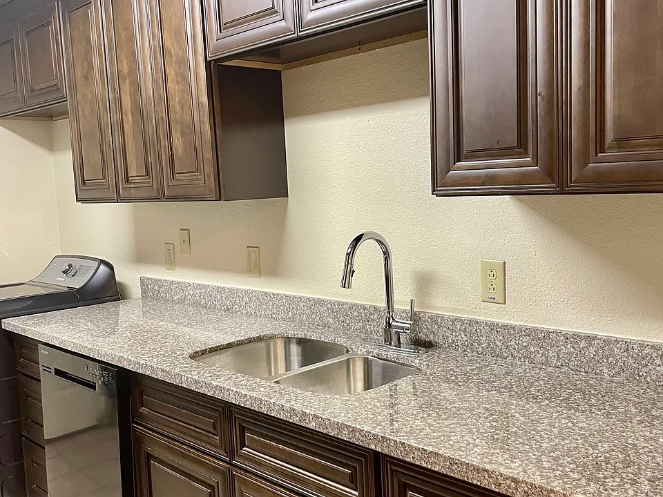 Beautiful Remodeled One story Townhouse in prime west end location. No stairs & no noisy upstairs neighbors! New custom cabinets in kitchen and bath with white and black Luna Pearl granite countertops, new lighting and fixtures, covered parking for 2 vehicles, private fenced patio, washer/dryer included! The living room and bedrooms are Very Spacious with huge walk in closets offerings lots of storage space. It is located at the most quiet and convenient location near all of the best restaurants and shopping conveniences on Dowlen Rd. Apply on our website! You can also pay rent online. There's no application fee. Deposit $750.