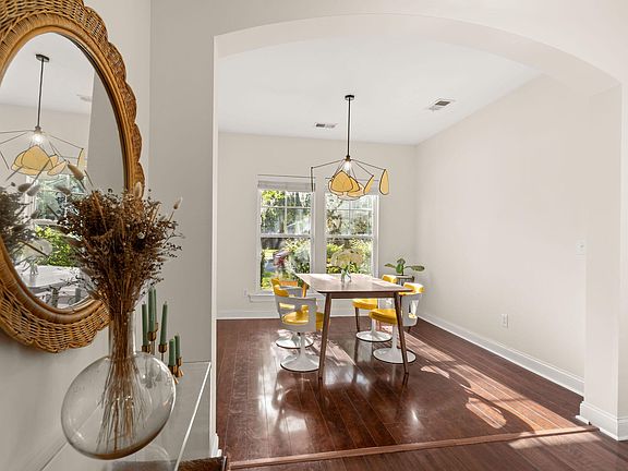 Stunning Charleston Single with Double Porches & Live Oaks! 4BR/3BA home featuring open floor plan, gleaming hardwood floors, formal dining, vaulted family room w/gas fireplace. Kitchen offers granite countertops, breakfast bar, and 2023 appliances. First floor includes guest suite + flex space (office/game room) w/full bath.Family room opens to screened porch overlooking large fenced backyard w/covered patio--perfect for entertaining.Upstairs: Spacious primary suite w/tray ceiling, walk-in closet, en-suite bath w/dual vanities, soaking tub, walk-in shower, & private water closet. Two additional bedrooms, full bath, and laundry room.Recent updates include, brand new HVAC (2025), all appliances new in 2023, and interior freshly painted (October 2023)! 2-car attached garage. Sought-after neighborhood w/clubhouse, park, fish dock, and walking/jogging trails. Zoned DD2 schools. Convenient to Joint Base Charleston, CHS Airport, Boeing, Bosch, golf, shopping, & dining. Move-in ready schedule your showing today!