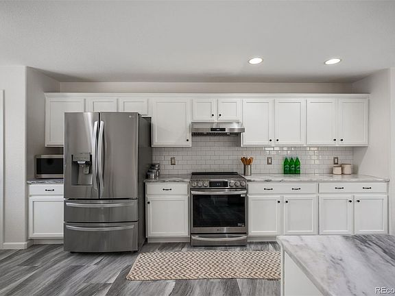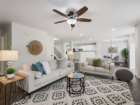 Phenomenal location in Cherry Creek School District, close to parks, trails, Southlands Mall and E-470. The minute you walk in you notice the abundance of natural light throughout. The kitchen is amazing with marble countertops, custom tile backsplash, stainless appliances, pantry and eat-in dining space. The manufactured hardwood floors throughout the main level, stairs and loft are beautiful and you’ll love the new carpet in the bedrooms. Brand new paint inside and out, plus a new privacy fence mean no maintenance for years to come. Move-in ready with blinds throughout, plus washer and dryer. The oversized lot and mature landscaping make this yard a dream. Entertaining is a breeze in the open-concept great room, with dining area and slider to your private backyard oasis and deck. Cozy up in the great room this fall with your gas fireplace. Upstairs you’ll find three bedrooms plus a loft space for whatever your imagination desires. The primary suite has a five-piece bath with custom tile and quartz countertops. The full bath in the hall also has quartz countertops. The unfinished basement offers potential for instant equity or plenty of gear storage. All you have to do is unpack and start enjoying that Colorado lifestyle.
