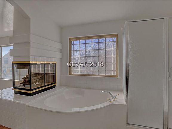 This Las Vegas two-story sits in a gated community and offers a fireplace, a walk-in closet in the master suite, and a two-car garage. Upgraded features include fresh interior paint. Gated security is part of the Villa Trinidad at Painted Desert CA. Home comes with a 30-day buyback guarantee. Terms and conditions apply.
