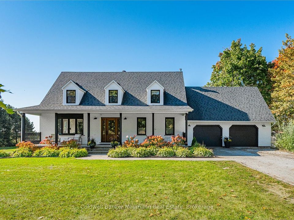 Welcome to your modern farmhouse retreat, surrounded by scenic farmland and offering a peaceful escape from city life. Set on a one-acre lot, this thoughtfully updated home blends contemporary style with everyday functionality.A charming covered porch welcomes you as you arrive, perfect for peaceful moments or greeting family and friends. Inside, you'll find over 2,300 square feet of finished living space, along with a spacious unfinished basement. With 3 bedrooms and 3 fully renovated bathrooms, there is plenty of space to relax or entertain.The main floor offers a flexible layout that includes a bright living room, a separate office (or formal dining or playroom), a cozy family room, and a convenient laundry area. Sunlight pours in through large rear-facing windows, showcasing picturesque views of the private backyard. The entire home has been updated from top to bottom, including brand new flooring throughout in 2023.Upstairs, two generously sized bedrooms, a renovated four-piece bathroom (2018), and a cozy reading nook provide comfortable living space. The spacious primary suite features a walk-in closet, a newly renovated ensuite (2024), and room for a private seating area.Step outside to enjoy a backyard oasis with a newly finished deck (2022), surrounded by mature trees and open farmland. Evenings can be spent around the fire pit while the kids play and swim, creating the perfect summer scene.This home offers rural tranquility with modern updates and is located just minutes from town. Recent upgrades include heat pump (2025) windows, doors, soffits and eaves (2018), fireplace insert, lentil and chimney liner (2019), powder room (2020), well pump (2022), water heater (2023), water softener (2023), washer and dryer (2023), dishwasher (2024), and ensuite bathroom (2024).This is more than just a home. It is a lifestyle designed for comfort, connection and lasting memories.