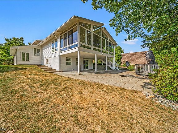 Lakefront living in the Mentor Harbor Lagoons with direct Lake Erie access. This 3-bedroom, 2.5-bath home includes five private docks located just behind the house—perfect for boaters. Walk to the Mentor Harbor Yacht Club or relax in the three-season room featuring a wall of glass that overlooks the water. The finished walk-out lower level opens to a covered stone patio, ideal for outdoor enjoyment and entertaining. Multi-level decking leads from the home down to the docks and private boat house. The owner's suite currently uses Bedroom 2 as an expanded dressing area and walk-in closet. Designed for buyers seeking a boating lifestyle and water views, this home offers the rare combination of privacy, dock access, and indoor-outdoor living.