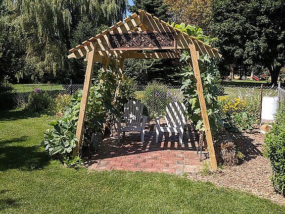 Gardener's dream! Rare opportunity to rent this 3 bed, 1.5 bath, half-duplex condo w/ flower gardens, fenced garden plot, apple, cherry and peach trees. Small fish pond and vinery to relax by. Multiple berry bushes and woods on 1.25+ acre lot in the town of Oregon. Quiet country setting w/ easy access to Madison. Very well-maintained property boasts remodeled kitchen w/ knotty cabinetry, tile backspash, island breakfast bar, new floors and all new windows . Appliances and washer/dryer included. Vaulted great room w/ walkout to private back deck. 2 bedrooms & full bath on main level. Finished, exposed, lower level with family room, 1/2 bath, & 3rd bedroom. 1-car attached garage, plus shared detached garage with large work area. Ideal for work at home office with proximity to city but country setting.