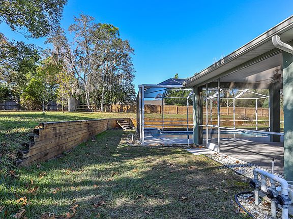 Just Reduced!! 2004 Custom built 3/2/3 Pool home with oversize lot and driveway.Just painted fresh mulch, and professional cleaned. Split plan with large 12x12 guest bedrooms with built in desk/computer station and book shelves.Dual sinks in guest baths.Master has Hardwood floors/walk in closet. Master bath has 2 vanity sinks and snail shower.Kitchen bar with stainless steel appliances,tile back splash, '18 x18' tile floors, Roll out drawers/Eat in kitchen with windows,Hurricane (tinted) film on all windows (except the nook and sliders)lanai,14x28 pool/waterfall and partial fenced yard.Family room has new Berber and is wired for surround sound. MOTIVATED SELLER BRING OFFERS!!