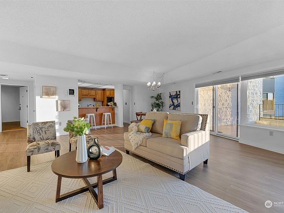 Welcome home to the Commodore! Gorgeous sound and mountain views, safe and secure building, here’s your opportunity to make the heart of downtown Edmonds home. Spacious single level living offers large primary bedroom and bath with plenty of closet space plus additional bedroom and bath perfect for guests or home office. Inviting and open living and dining room looks out to views and covered patio perfect for outdoor dining, relaxing and incredible sunsets all year long. Laundry room right off kitchen. 2 reserved parking spots and additional storage locker in gated garage. Unbeatable location - close to beaches, marina, and an easy stroll to vibrant downtown Edmonds shopping and dining!