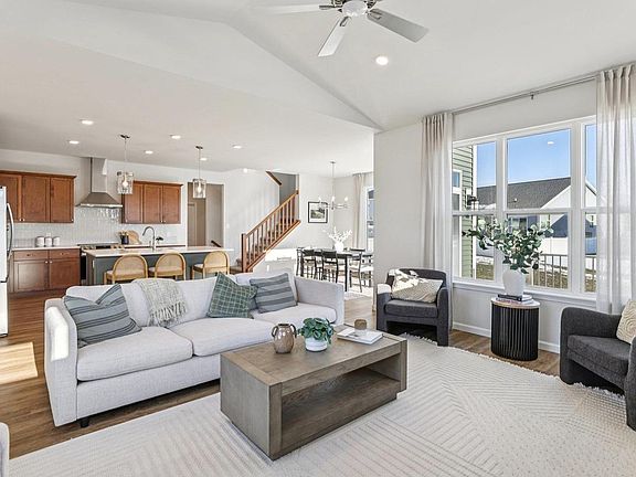 Tim O'Brien Homes 2024 Fall Parade of Homes model. Welcome to this spacious 5-bedroom, 3-bath home. You're greeted by an impressive 2-story foyer. Enjoy living in this inviting open-concept layout. Great Room boasts cathedral ceilings and is anchored by a cozy fireplace. The huge kitchen is a chefs dream and perfect for entertaining. The bright dining area creates a comfortable space for both everyday living and entertaining. Plenty of storage with a walk-in pantry, huge laundry room and rear foyer with large walk-in closet. A bedroom and full bath on the main level make this home spacious and functional. Upstairs find 4 more bedrooms including a luxurious primary suite w/ large walk-in closet, and en-suite bath: your personal retreat at the end of the day. Plenty of space in the 3-car gar