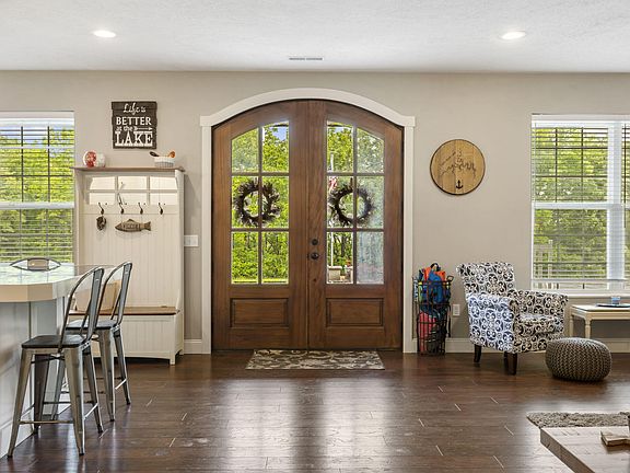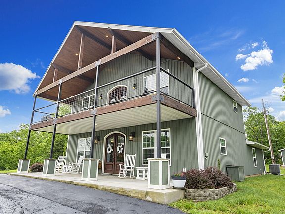 Immerse yourself in the tranquility of lake life on Table Rock Lake! This stunning 2-story residence is a true masterpiece, boasting 4 bedrooms, 2.5 bathrooms, and an array of exceptional features that will exceed your expectations. From the custom countertops to the grand mahogany double front doors, every aspect of this home showcases meticulous craftsmanship and uncompromising quality. Unleash your culinary creativity in the fully equipped kitchen, where the crushed glass countertops provide a touch of elegance that perfectly complements the sleek white cabinets and stainless steel appliances. The oversized island serves as the focal point of the home, offering an inviting space for gatherings with loved ones. Explore further to discover three additional spacious bedrooms and a conveniently located laundry room. The full-size bathroom features a dual sink vanity with an added makeup counter, ensuring ample space for everyone's morning routine. Ascend to the upper level to uncover a captivating wet bar adorned with live wood countertops and open shelving. This enchanting space seamlessly transitions to a covered deck through another set of beautiful mahogany double doors, providing an ideal setting for entertaining and soaking in the seasonal scenic lake views. Retreat to the master bedroom on the second floor, complete with an ensuite bathroom that offers a private sanctuary within the home. Experience the best of both worlds - unparalleled privacy on nearly 3 acres, yet a short 20-minute drive to Branson West and less than 40 minutes away from all the vibrant entertainment of Branson. Don't let this opportunity to own your own private haven by the lake slip away. This property can include furnishings and a dock slip and boat lift for an additional cost. Contact your agent today to schedule a private showing!
