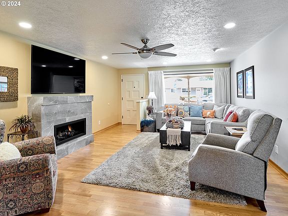 PRICE REDUCED ON 9/6/24. Beautiful large 2-bedroom home on the 13th fairway of the prestigious Woodburn Senior Estates Golf and Country Club, a vibrant 55+ community. Open the back gate and drive your golf cart out onto the golf course. Fully fenced with 4' fence. Both the front and back yards have been professionally landscaped and are beautiful and low maintenance. Enjoy the view of the golf course from the fully covered east facing outdoor patio, which provides shade and comfort during the warmer parts of the day. Home has many updates throughout, including hardwood floors and newly installed highly efficient gas fireplace. Open Living Area. Wonderful Primary ensuite with space for a sitting area, gym area, crafts, or space for an office. Primary includes full bathroom with walk in shower, multiple closets and built-ins, including pull out drawers. Interior laundry room with ample storage and utility sink. Updated kitchen with pull out drawers in cabinets. This floor plan provides for a lot of natural light in all rooms and views of the golf course from most of the house. Newly paved driveway with room to park 3 vehicles. First American Home Warranty included by seller. HOA amenities include golf, pool, exercise equipment, library, holiday events and so much more.