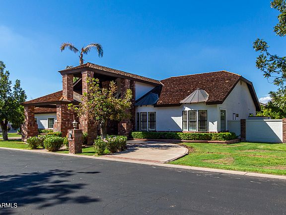 Welcome to the prestigious Community of The Groves of Gilbert! You can walk to Downtown Gilbert from this Grand Custom Brick home, ready for a new family to update into their own. Impressive curb appeal highlighted by a lush grassy landscape with mature pecan trees. Upon arrival, a covered porte-cochère and circular driveway exude elegance. The spacious & charming interior showcases vaulted ceilings, abundant natural light and exposed beams. Inviting formal living room, formal dining room, and large family room with a full size wet bar & brick fireplace, providing versatile spaces for gatherings! The kitchen boasts built-in appliances, quartz counters, a large walk-in pantry, recessed lighting, a breakfast bar, a plethora of cabinetry, and a butcher block center island. Adjoining is the additional dining area with French doors to the back! The oversized primary bedroom has its own fireplace and an ensuite that features a jetted tub, dual sinks, separate shower, & a walk-in closet w/built-ins. Secondary bedrooms with bay windows & plantation shutters. Practicality meets convenience in the laundry room with a sink & cabinetry. Transitioning outdoors, you'll discover a backyard oasis that radiates tranquility! Its expansive covered patio is the perfect spot for relaxation, complete with a built-in BBQ for culinary enthusiasts. Let's not forget the RV gate and the 3-car garage with attached work area and cabinetry! Situated on a corner lot within a quiet cul-de-sac, this home enjoys both privacy and prestige.