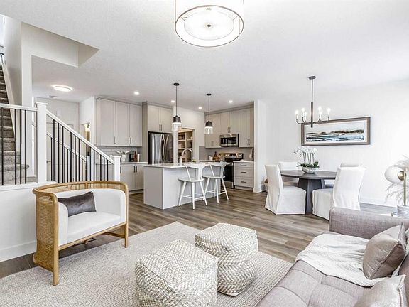 ** Beautiful Community of Rivercrest** West facing back yard** With easy access to Highway 22 and Highway 1, this growing community of Rivercrest is the perfect place to make it home for your family. Here you can breathe easy, enjoying the natural beauty of the area and the town’s many amenities while staying connected to everything Calgary and the Rocky Mountains has to offer. Up and coming Elementary School will be in a short walking distance!! Framing is completed and insulation will be starting shortly. You still have time to make to make this your home by making interior color selections. This 3-bedroom, 2.5 bath, with bonus room 2-storey features 1,884 sq.ft. of spacious living with exceptional quality finishes that only a Janssen Home can bring! Main floor features living room with Gas Fireplace, a kitchen with walk through pantry/mudroom, nook eating area opening onto a 12’ x10’ deck. Upper level features a primary retreat with walk-in closet that adjoins by pocket door to a spacious laundry room with lower cabinet and undermount deep sink, 5-pce ensuite with dual undermount sinks, soaker-tub & walk-in shower, 2 additional bedrooms off the bonusroom and an additional 4-pce bath. Upgraded features include: 9' main-floor walls, painted railings & metal spindles, luxury vinyl plank flooring throughout main level, tile in laundry & upper baths. Full height kitchen cabinets with soft close doors/drawers & full extension drawer glides, quartz counters, undermount sink plus 5 S/S appliance package which includes gas range and range hood!. Built on Site solid shelves. LoE Argon slider windows, R-50 attic insulation, high efficient furnace w/programmable thermostat & drip humidifier, hot water on demand and 4 pc R/I plumbing in basement. Spacious covered porch at front, finished deck at back w/aluminum railing & steps to grade. Warranty includes 1 yr comprehensive, 2 yrs heating, electric, plumbing, 5 yrs building envelope, 10 yrs structural. *Note - Interior and Exterior photos are from previous builds*.