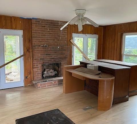 Brick fireplaceLarge covered deck areaEnclosed front porchNew windowsNew french doorsMultiple french doorsNew flooring