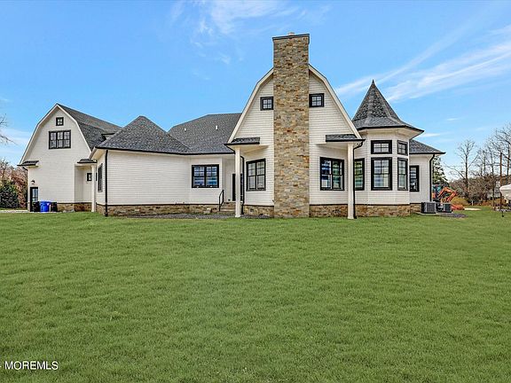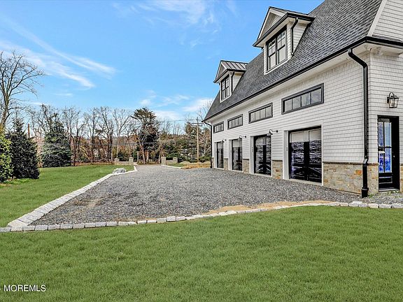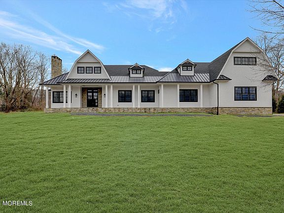 Enjoy an elegant Farmhouse estate in a luxurious and peaceful locust section only minutes to the beach, This 5 bedroom, 5.5 bathroom home offers refuge, simplicity, and rustic charm that embraces modern comforts, creating a cozy and stylish look and feel. Your drive home will be along the Navesink River, home to some of the most beautiful and famous mansions in Monmouth County. This area is also home to celebrities who enjoy the privacy and seclusion the area is known for. The location is convenient to Downtown Red Bank, known for its shopping and dining options. Near fantastic private and public schools, a short drive to the New Jersey shore, and a short commute by train, ferry, bus, or drive to New York City. This estate is welcoming with a large wrap-around open front porch. The interior embraces a grand entryway, an open floor plan, natural light, stylish fixtures, neutral decor, notable ceiling styles (including vaulted and beamed), two fireplaces (living room and family room), and a wine room encased in frameless glass and separating the Sitting room to the dining room. Ceramic tile with radiant heated floors are used throughout the first floor. More than merely tranquil, the well-appointed main-floor primary bedroom includes two walk-in closets, a linen closet, and a private bath with a walk-in steam shower. The remaining bedrooms and the upper grand room are ensuites, offering the convenience of main-floor accessibility, and are unique and ready to reflect your good taste in decor. The home includes a basement of over 2500 square feet, and attached is a grand four-car garage with workshop space designed for car enthusiasts and suitable for car lifts. This home offers a unique lifestyle with surrounding natural splendors parks and recreation.