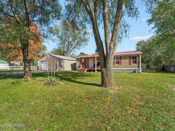 546 Maple Branch in Auxvasse, MO is a well-maintained manufactured home on a fixed foundation featuring 3 bedrooms and 2 bathrooms. The home offers numerous updates, including laminate flooring, a 3-year-old HVAC system, 3-year-old hot water heater, 2-year-old refrigerator, and 2-year-old dishwasher. Enjoy the covered back deck overlooking the backyard — perfect for relaxing or entertaining. The property also includes a detached two-car garage, ideal for a workshop. The storage container next to garage does convey. The cameras do not convey. An affordable and well-cared-for home ready for its next owner!