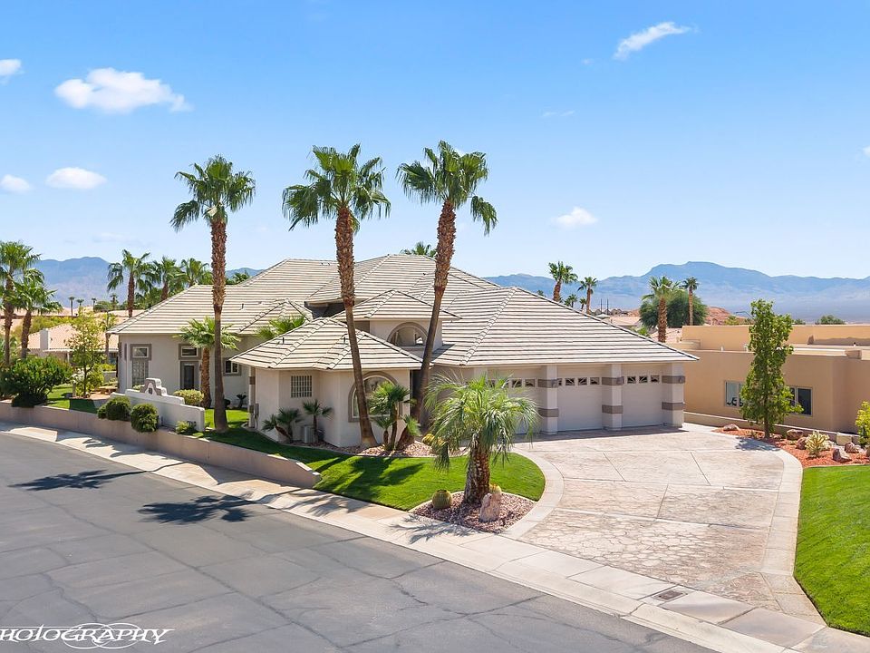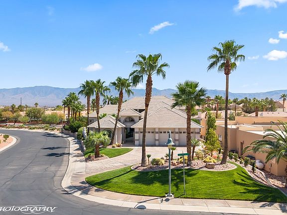 Architectural Beauty - Stunning Grounds on this Estate. Located in the highly desirable gated community of the Terraces. Built on one of the largest lots in the subdivision (.40 acre ) you'll find this "Stunning Architectural Beauty". Spectacularly landscaped....It appears as an oasis in the desert. Lush green lawns are meticulously manicured. Masterful landscape design has 38 palm trees of varying sizes and bushes of all varieties that wrap this home with rich color. Its an unforgettable residence for sure. Great room showcases ceiling heights you have not seen in a long while. Large windows line the east facing wall of the great room with views of the extraordinary outdoor courtyard, patios and grounds. The architecture, angles and windows throughout the home are gorgeous - not your typical tract home floor plan. Main Suite is luxurious in in size and amenities. Beautiful custom staircase leads up to two guest bedrooms each with their own spacious balcony. Casita located off the main courtyard entry offers yet another 3rd guest bedroom. Comfortable family room is located right next to the kitchen which offers double ovens, stainless steel appliances and a kitchen dining area surrounded by windows. 3 Car Garage.