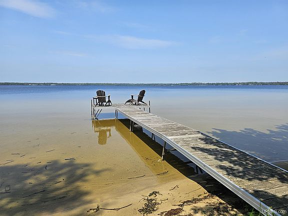 Enjoy peaceful waterfront living with this cute and cozy 1-bedroom, 1-bath home nestled along the south side of beautiful Gulliver Lake—giving you the rare treat of both sunrise and sunset views. Thoughtfully remodeled, this home features a newly updated kitchen with modern appliances, an on-demand hot water heater, a brand-new metal roof, and a new septic system including tank and drain field in 2016. Step inside to find an inviting layout with a sunroom at the back offering stunning water views and access to the deck—perfect for relaxing or entertaining. A covered front porch adds charm and functionality, while the home’s close proximity to the shoreline means you’re just steps from the water. With 50 feet of frontage, you’ll have your own piece of this all-sports lake known for fishing and recreation. The large two-car garage offers ample space for vehicles, lake toys, and storage. Most furnishings are included, making this a turnkey getaway or year-round home with negotiable personal items. Don’t miss your chance to own an affordable slice of waterfront paradise!
