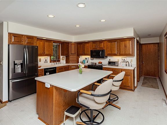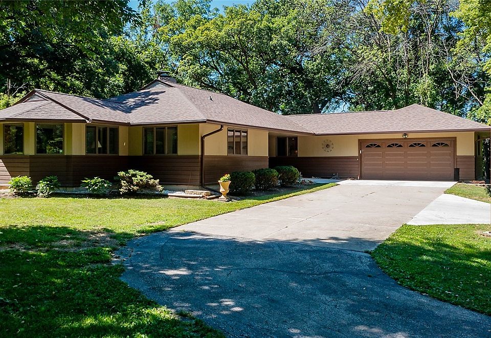 One of a kind acreage situated on beautiful 4.56 acres in North Ames. This custom built ranch home was designed to capture the beauty of the scenery. The living room features lots of windows, built in shelving and gas fireplace. Move to the sunroom for more views on the west side of the property. Kitchen provides lots of counter space, island seating and plenty of cabinet storage. Dining room features a built in buffet. Two primary bedrooms with 3/4 baths as well as a 3rd bedroom and full bath all on the main level. Main floor laundry with sink and storage. Lower level provides family room, non-conforming 4th bedroom, 3/4 bath and ample storage. Deck is constructed of composite material and is plumbed for gas directly to your grill. So many amazing features - cedar siding; roof new in 2019; whole house generator; additional garage for vehicle or equip storage; well for outdoor watering; part of acreage in forest reserve.