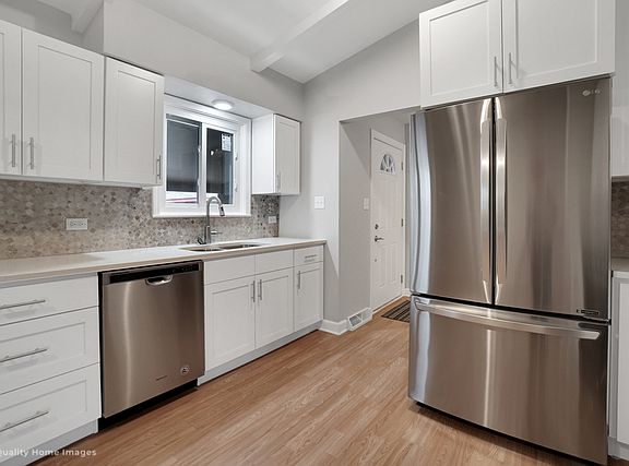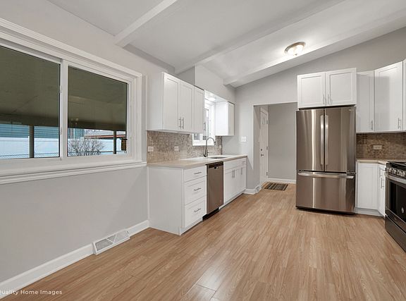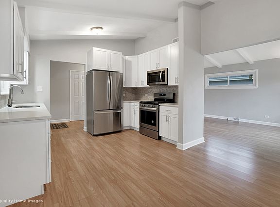 Completely remodeled 3 bedroom, 2 bath contemporary room split level home with large yard and 2 car garage. Step into this open concept home with vaulted ceilings on the main level including the updated eat-in kitchen with new 42" cabinetry, granite counters, custom backsplash and ss appliances, dining room and large living room. On the upper level are 3 bedrooms with beautifully refinished hardwood flooring and a totally updated full bath with new vanity, tiled shower and new flooring. The lower level has a large family room, another updated full bath with tiled walk in shower and new vanity, and the laundry room. All new flooring, paint lighting, finishes throughout. Detached 2 car garage.