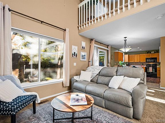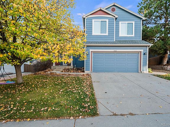 Welcome to 5460 Rockhampton Cir in Highlands Ranch. As you walk to the front porch you are greeted by beautiful shade trees and a lovely front yard. Step through the front door to find a bright open floor plan with vaulted ceilings, large living room with a gas fireplace, a dining area and kitchen. The kitchen has plentiful entertaining and counter space with numerous cabinets and all appliances included. There is also a half bath on the main level and attached 2 car garage. Upstairs find a great play room or office area in the loft, 3 bedrooms, a main hallway full bathroom and a whole house fan. The owner suite has double closets with awesome built-ins for storage, vaulted ceilings, a ceiling fan and attached full bathroom. The basement is finished with a family room, 1/2 bathroom and 4th conforming bedroom with an egress window and closet. The laundry room is also in the basement with the washer and dryer included. Newer furnace and A/C (installed 2020), and all new windows and sliding doors (2024) and newer exterior paint (2018)! The backyard boasts a poured concrete patio and pergola with the fire pit, gas grill, hammock, outdoor propane heater and patio furniture all willing to be included! The yard is fully fenced with sprinklers in the front and back, beautiful landscaping and numerous shade trees for enjoying the outdoors in the summer. The playground equipment can be included or removed prior to sale. Enjoy access to the 4 Highlands Ranch Rec Centers included in your low quarterly dues. Close to Falcon Park and Highland Heritage Regional Park & Trail. Easy access to shopping and restaurants. Schedule your showing today!