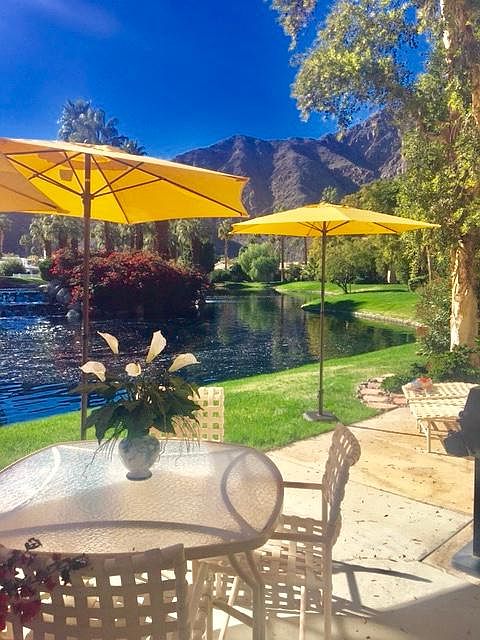 Lakefront in PGA West with fabulous waterfall and mountain Views. Steps to a large sparkling pool and jacuzzi.