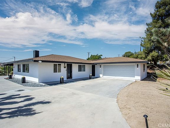 COUNTRY CLUB ESTATES: Newly Remodeled, modern style home including new double-pane/energy efficient windows throughout, new tile flooring throughout, custom interior frosted glass doors. New kitchen, featuring high-end cabinets, countertops, Kitchen Aid appliances and counter-to-ceiling tiled backsplash. Custom bathrooms outfitted with the very best and extra touches, such as no-expense-spared floor-to-ceiling custom tile work. All new surfaces. A Clean, Well-Lighted Place! Automatic blinds on all windows and sliding glass doors. Ring cameras and motion solar exterior lighting. Other features include an extra-large pantry that can be utilized as a perfect work-from-home office space. Home also includes TWO 2-car garages, one attached and one detached. The attached garage has a functioning, flushing toilet – providing additional living or sleeping space if converted. The large detached garage below the main house could be converted to an ADU/Guesthouse, a hang spot for privacy, a large office space, studio or additional storage. HUGE private, shaded porches out back creating an authentic indoor/outdoor modern living experience to enjoy all seasons, not to mention 10-to-15 degrees cooler than Palm Springs temperatures! Located on the West End of Yucca Valley, allowing one to leave town without passing through any traffic lights for a fast commute to Palm Springs or Interstate-10 to LA. Walking distance to wilderness hikes and close to the Hawk’s Landing Golf Club for dining or hitting the links.