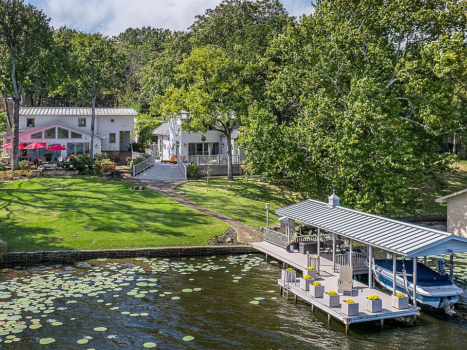 Boat dock with liftPrivate patioUpdated bathroomBeautifully landscaped yardsDeep-water settingConverted attic bunk roomPropane and wood-burning fireplaces