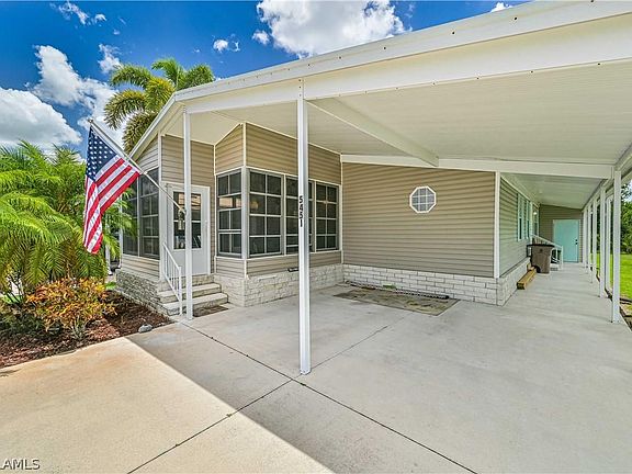 YOU OWN the LAND in this 55+ Community with LOW Monthly fees of $103.00 MONTHLY. You gotta see this immaculate open concept home featuring 2 LARGE Bedrooms with ample closets and a DEN. Home has an enclosed lanai with a beautiful view which is perfect for entertaining. Kitchen area is large with a pantry and breakfast area. Ample room for your vehicles with this 2 car carport. Newer roof in 2018 and newer A/C. Close to I-75, Sanibel, Beaches and 5 minutes to RSW Airport. Come see this hidden gem in this warm and friendly 55+ community where there is always something to do in the beautiful Clubhouse such as exercising, craft room, pool, and lots of social activities to many to mention or perhaps enjoy fishing at the pier, shuffleboard and bocce.